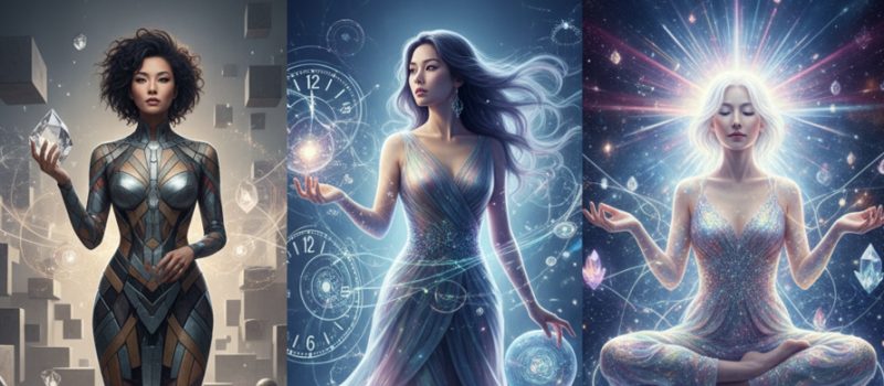 3D คือโลกแห่งอัตตา, ความกลัว, การแข่งขัน และการแยกขาด 4D คือสะพานแห่งการตื่นรู้, การสังเกต, และตั้งคำถามกับความเชื่อเดิม 5D คือภาวะจิตสูงกว่า, ความรัก, เอกภาพ, และความสงบ ที่มองทุกสิ่งด้วยการยอมรับและเห็นเป็นโอกาสเติบโต